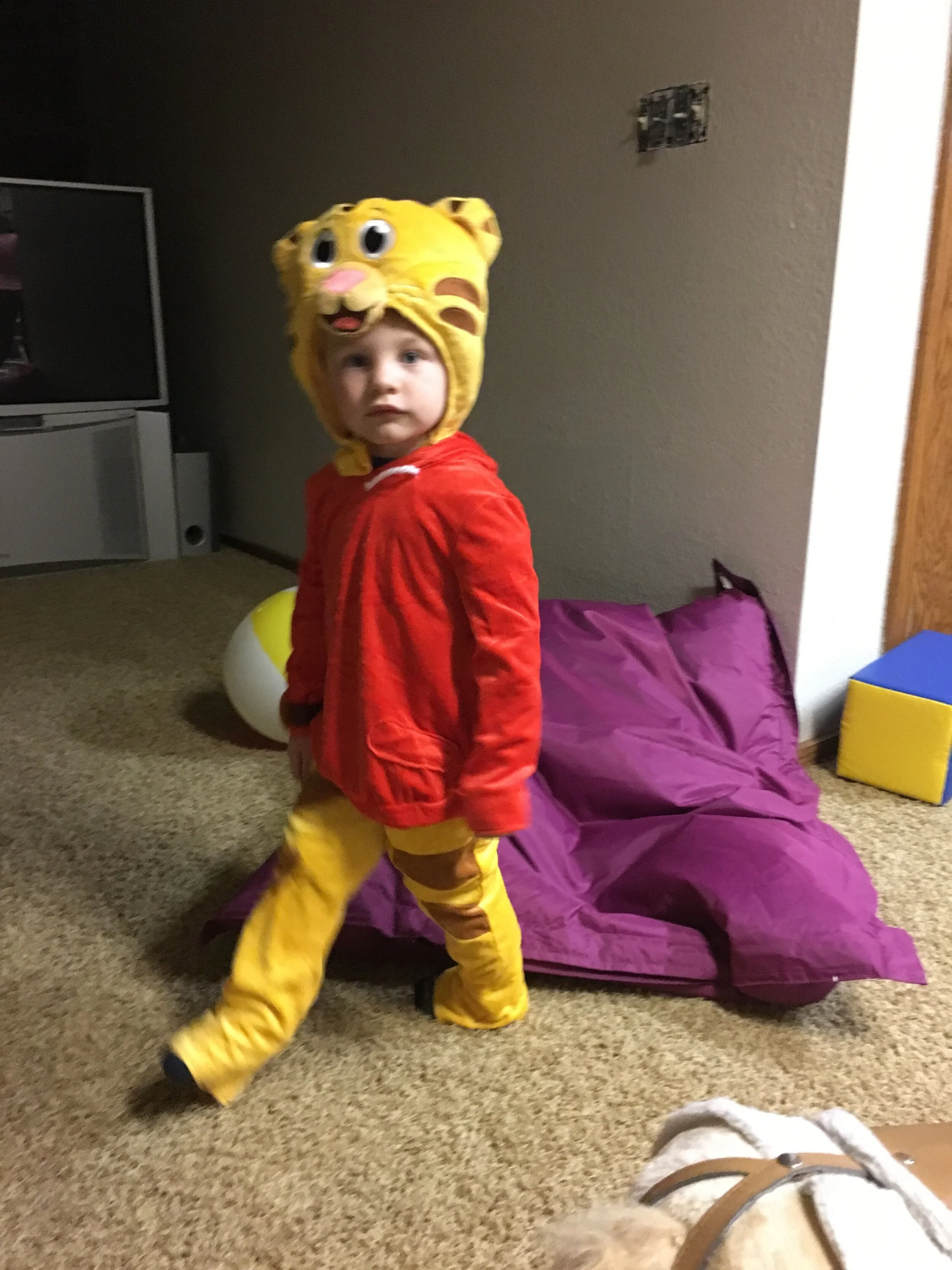 Tried out his Daniel Tiger Halloween costume at playgroup. Fairly successful!