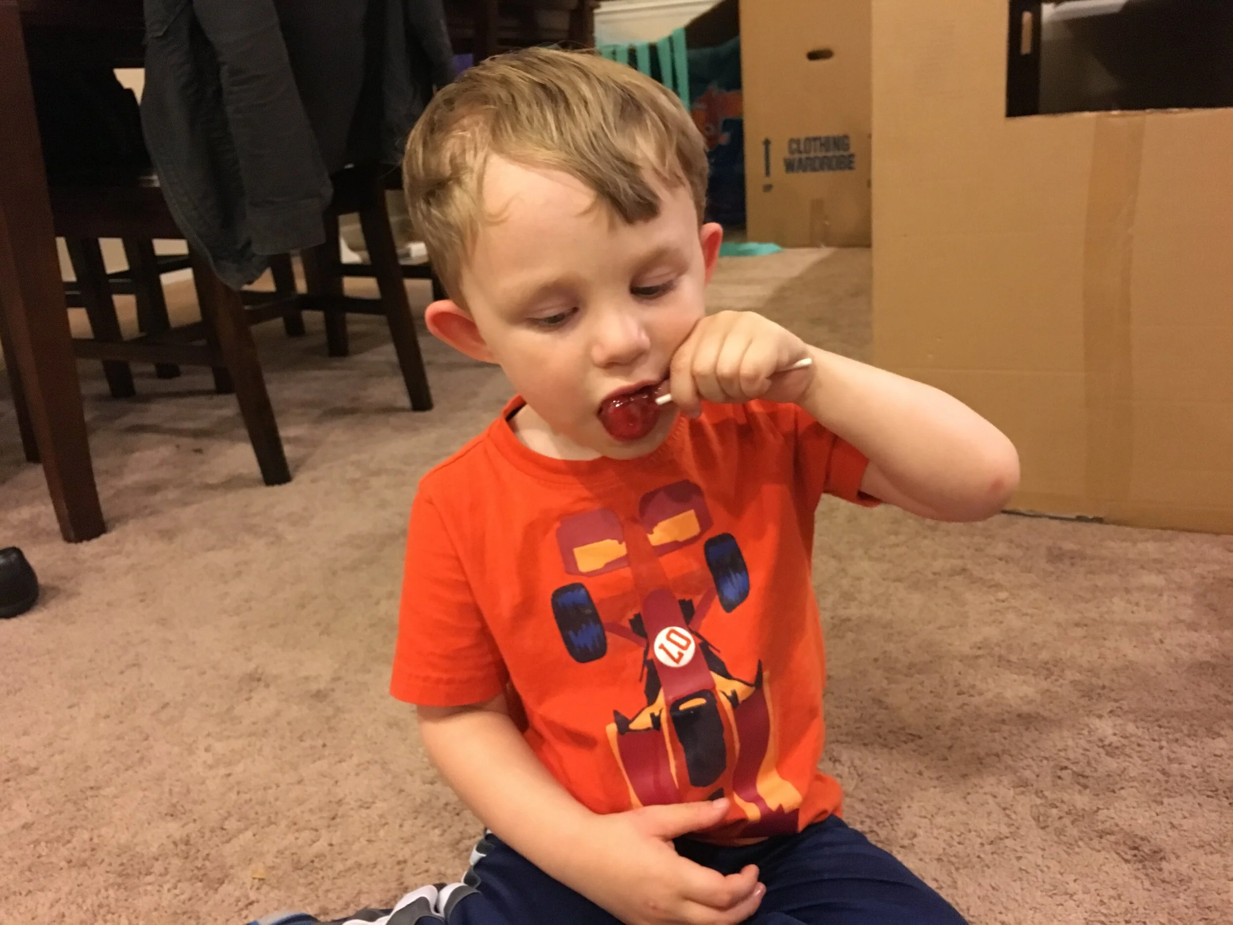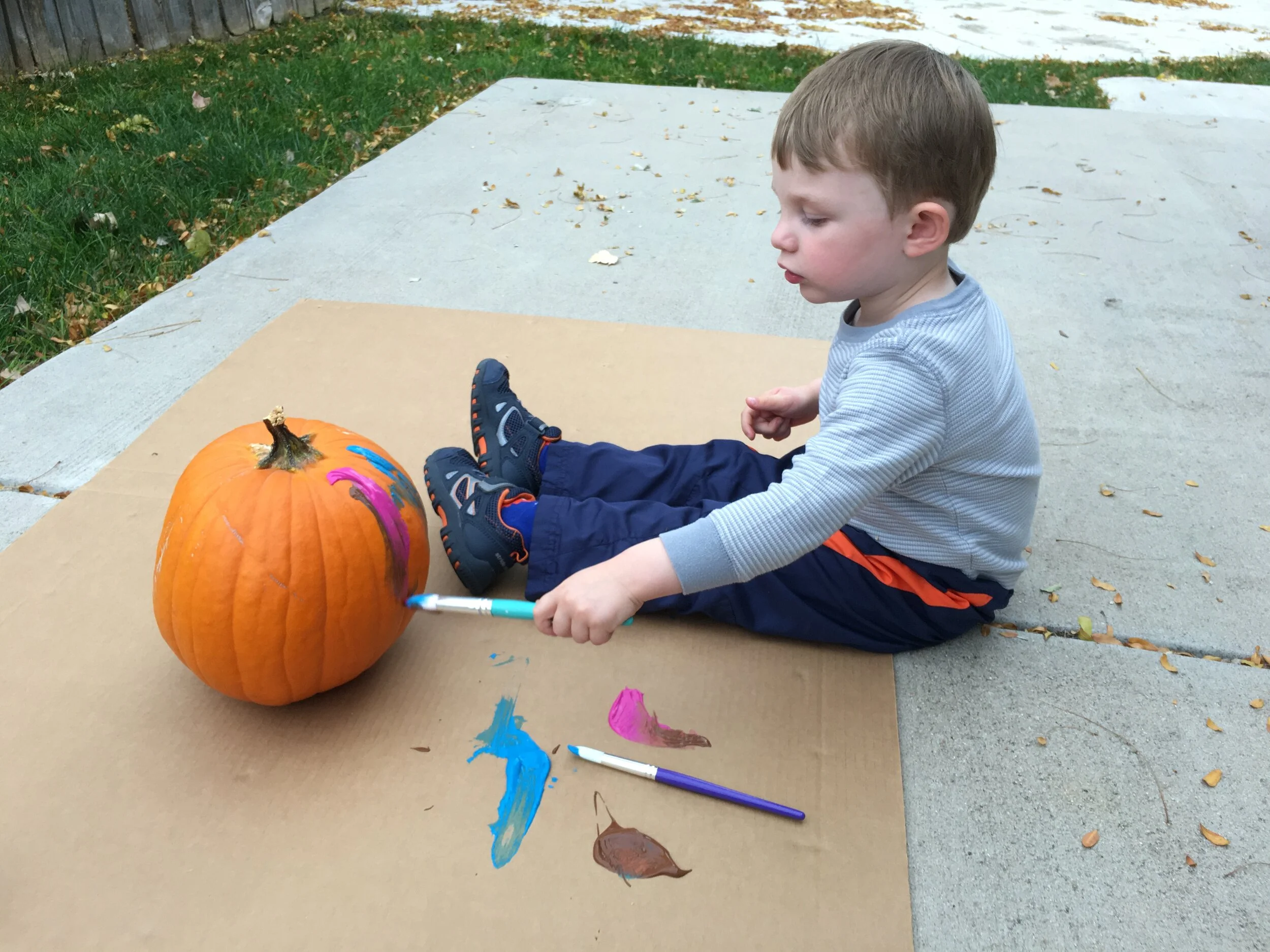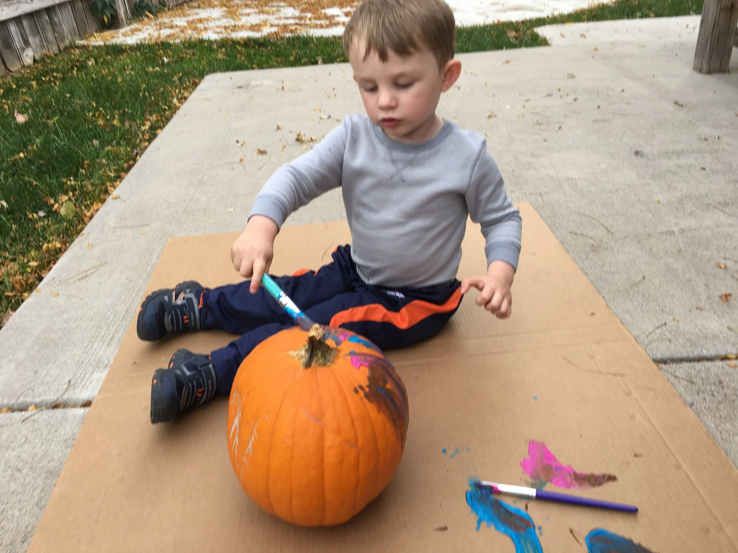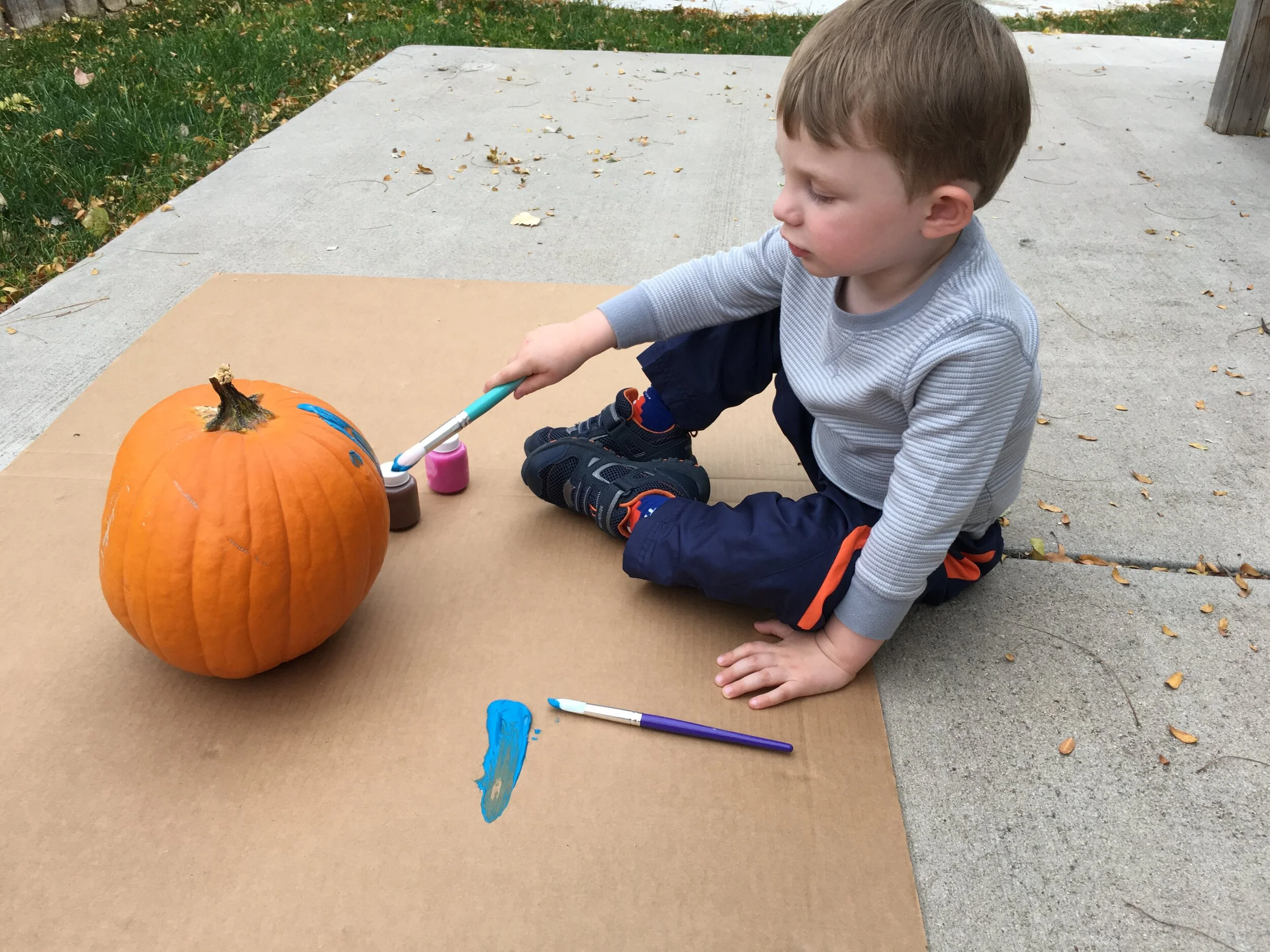 Not ready to let him carve anything yet, but he does an excellent job with just paint.