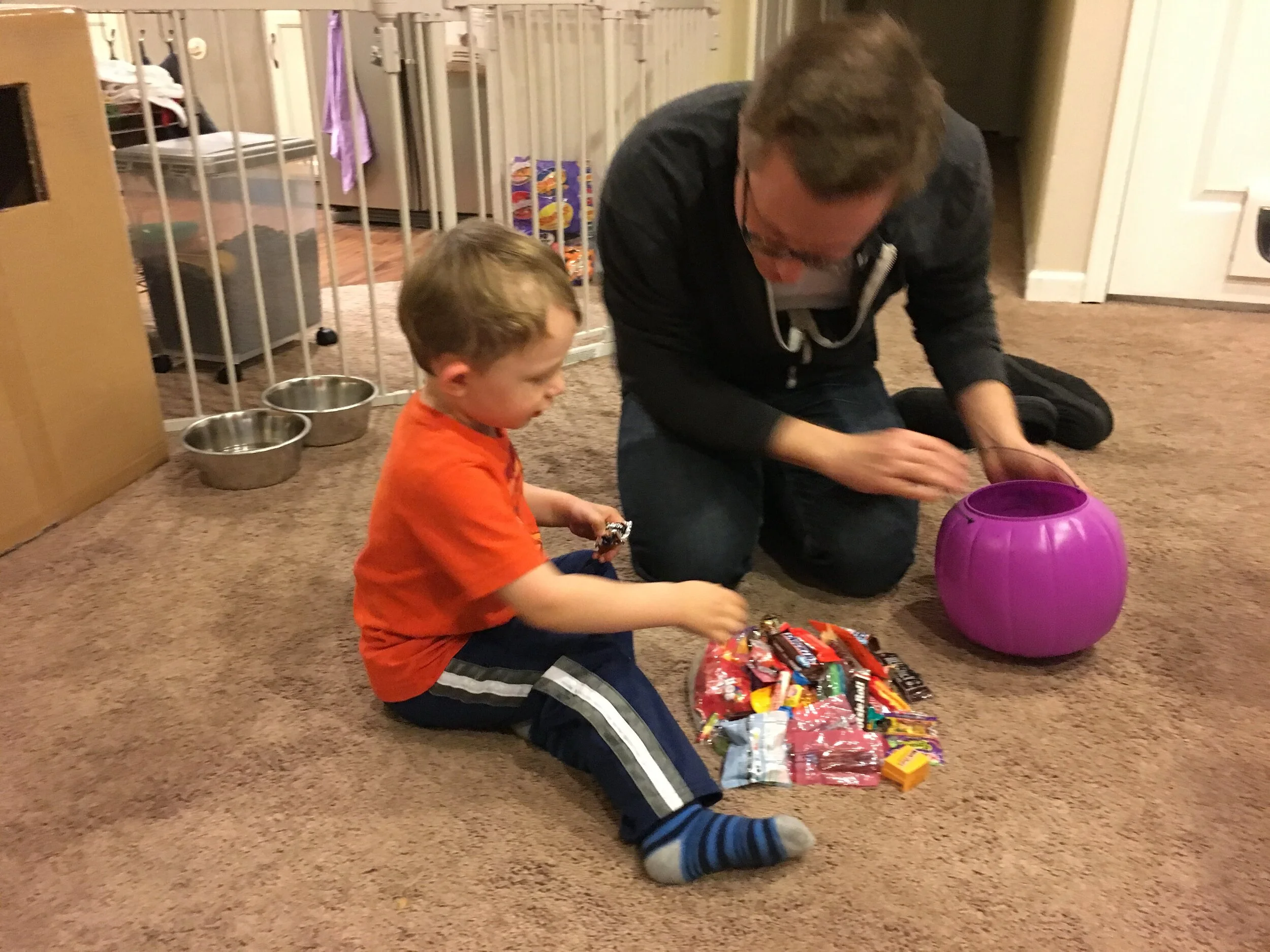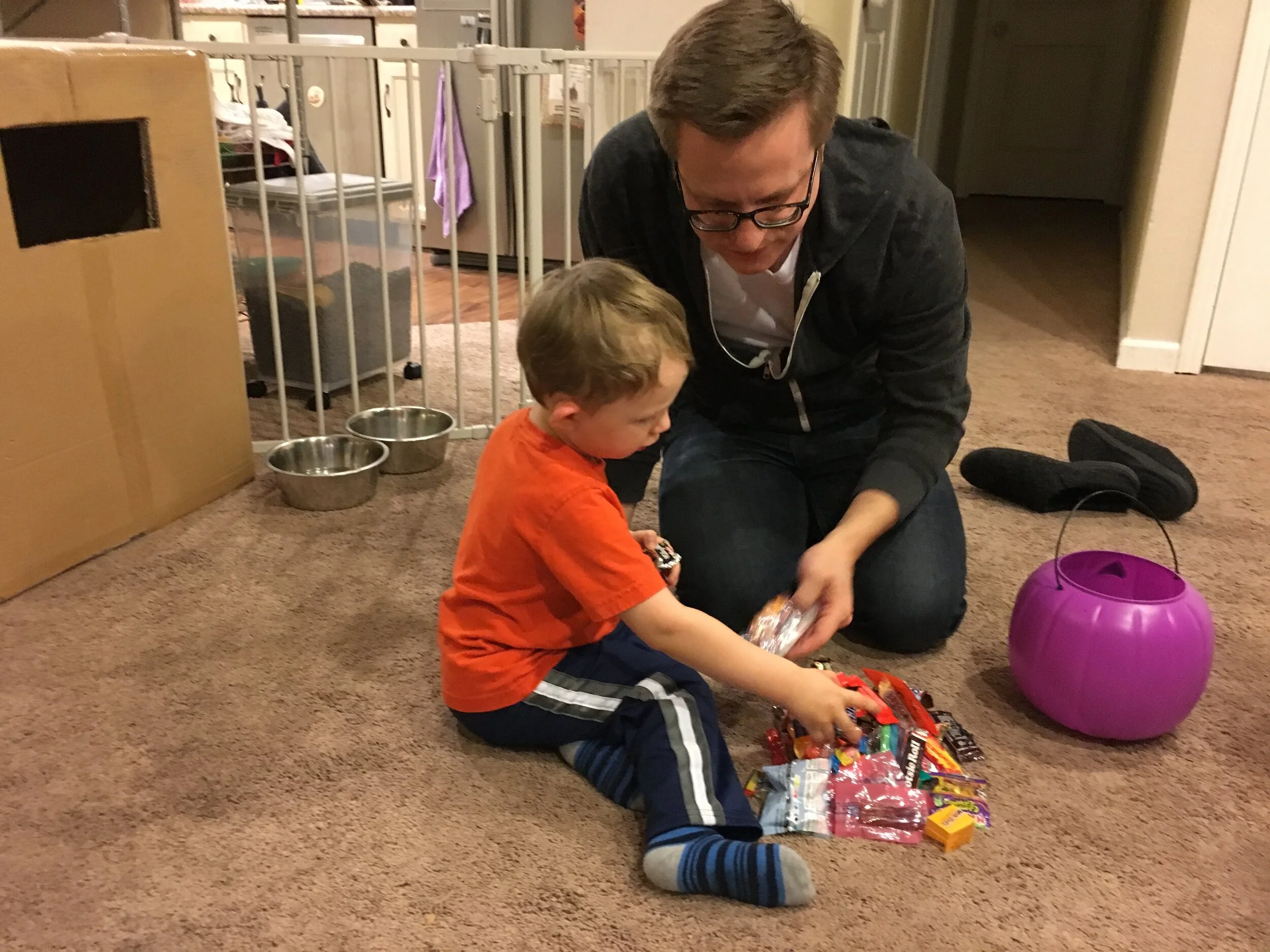Actual Halloween! We walked up and down the street a bit and then sorted the loot.