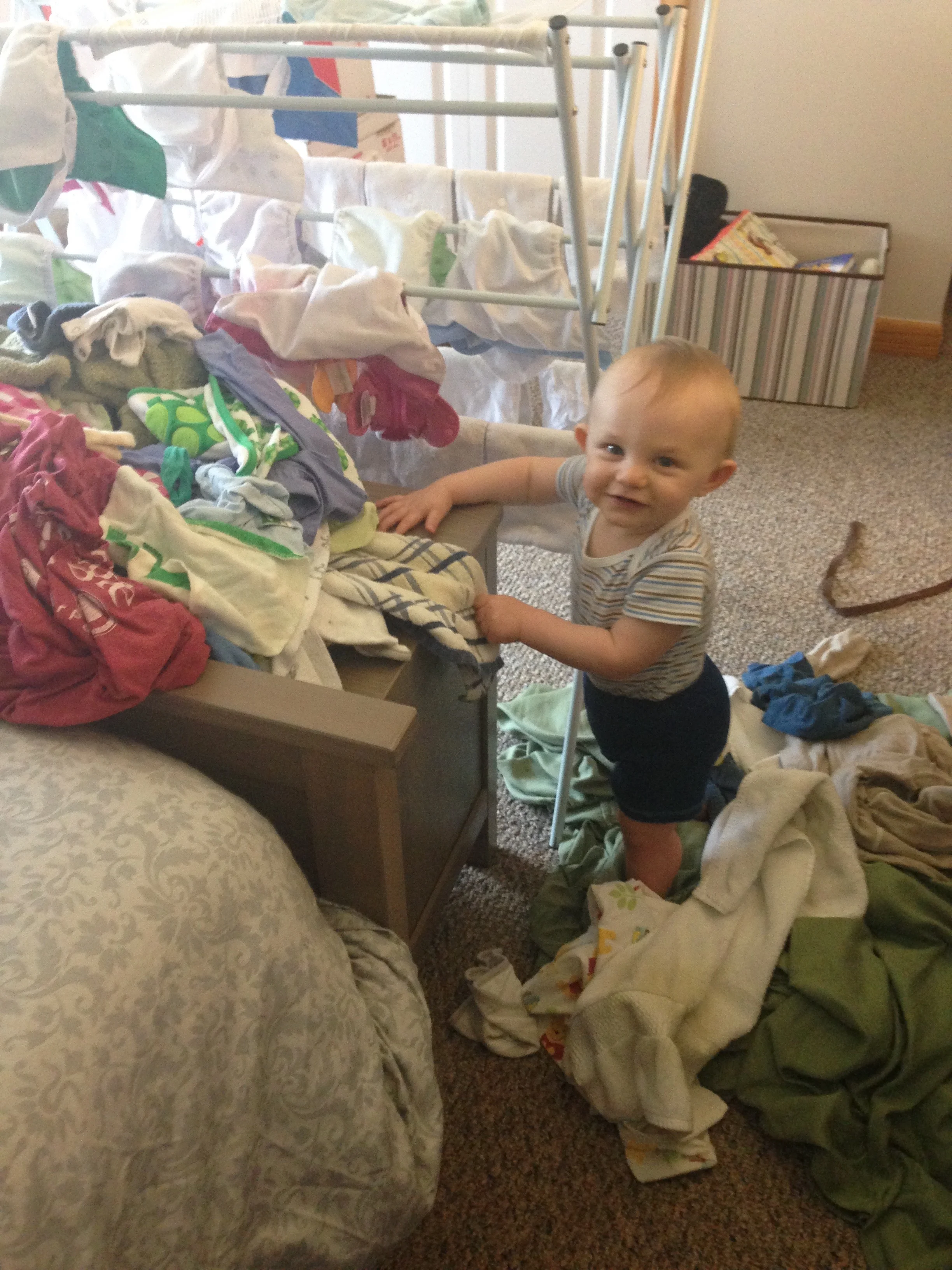 "Mom, let me help you fold clothes and put things away. I'm really good at it!"