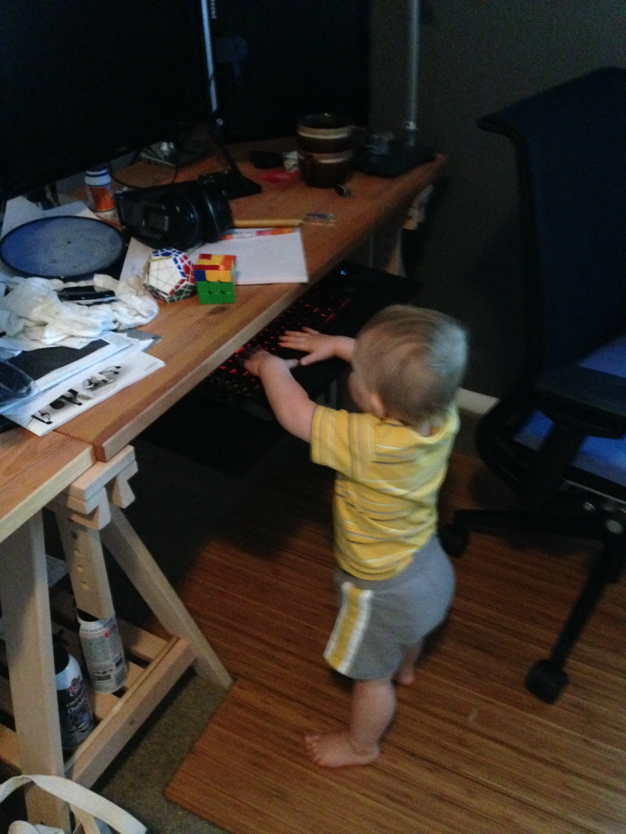 Gabriel loves to "work" at daddy's desk. Every chance he gets he's at the keyboard.
