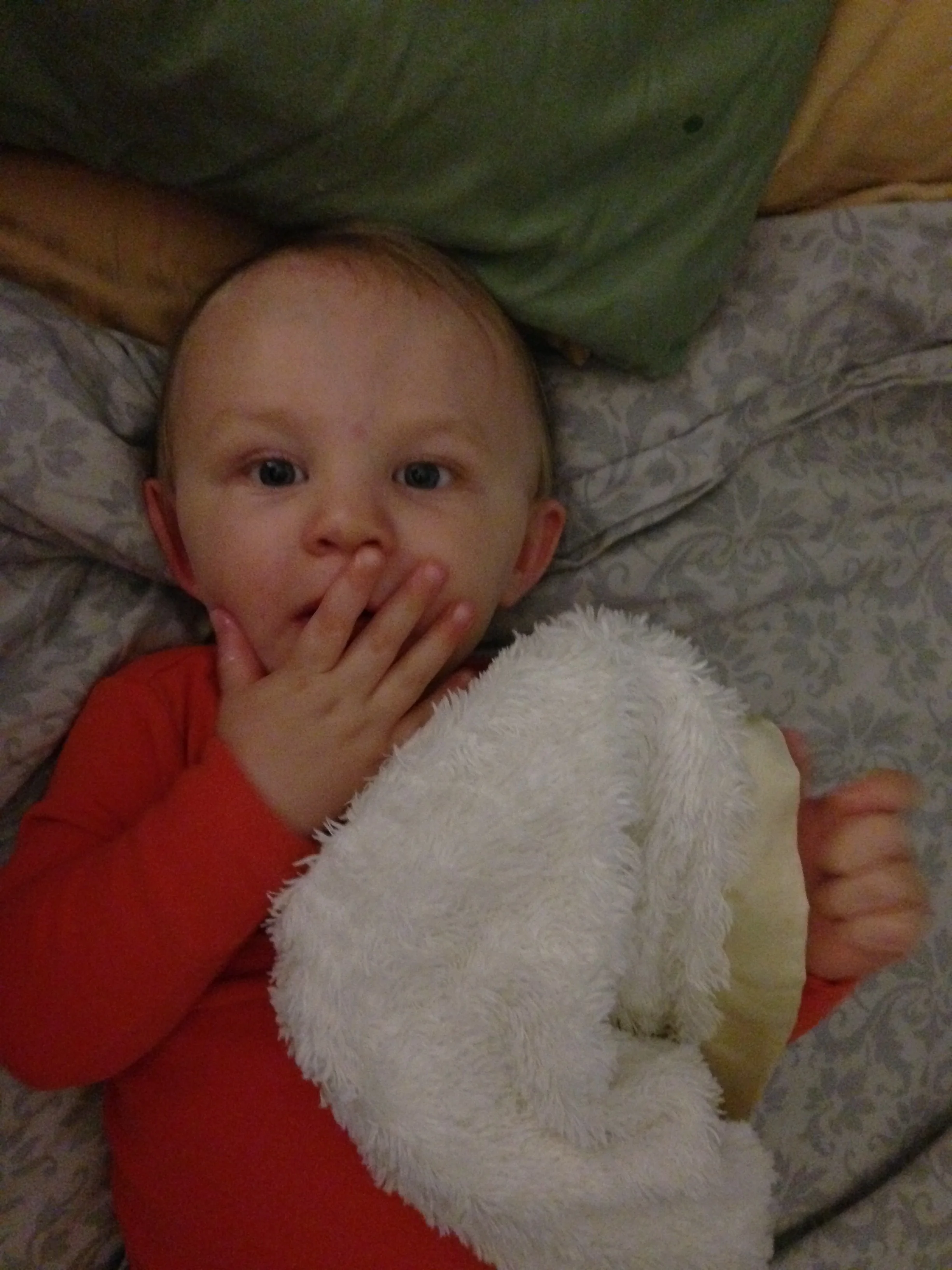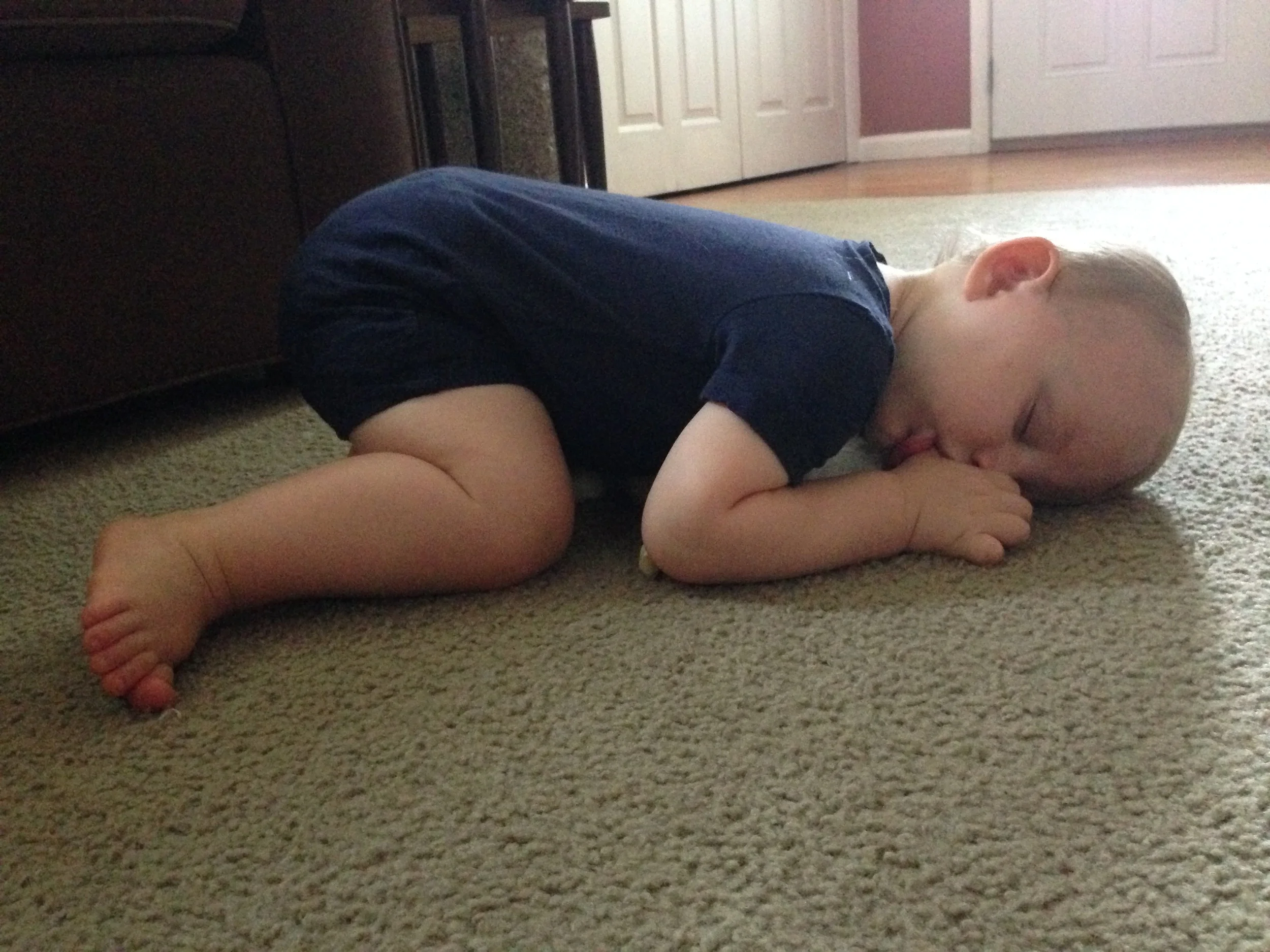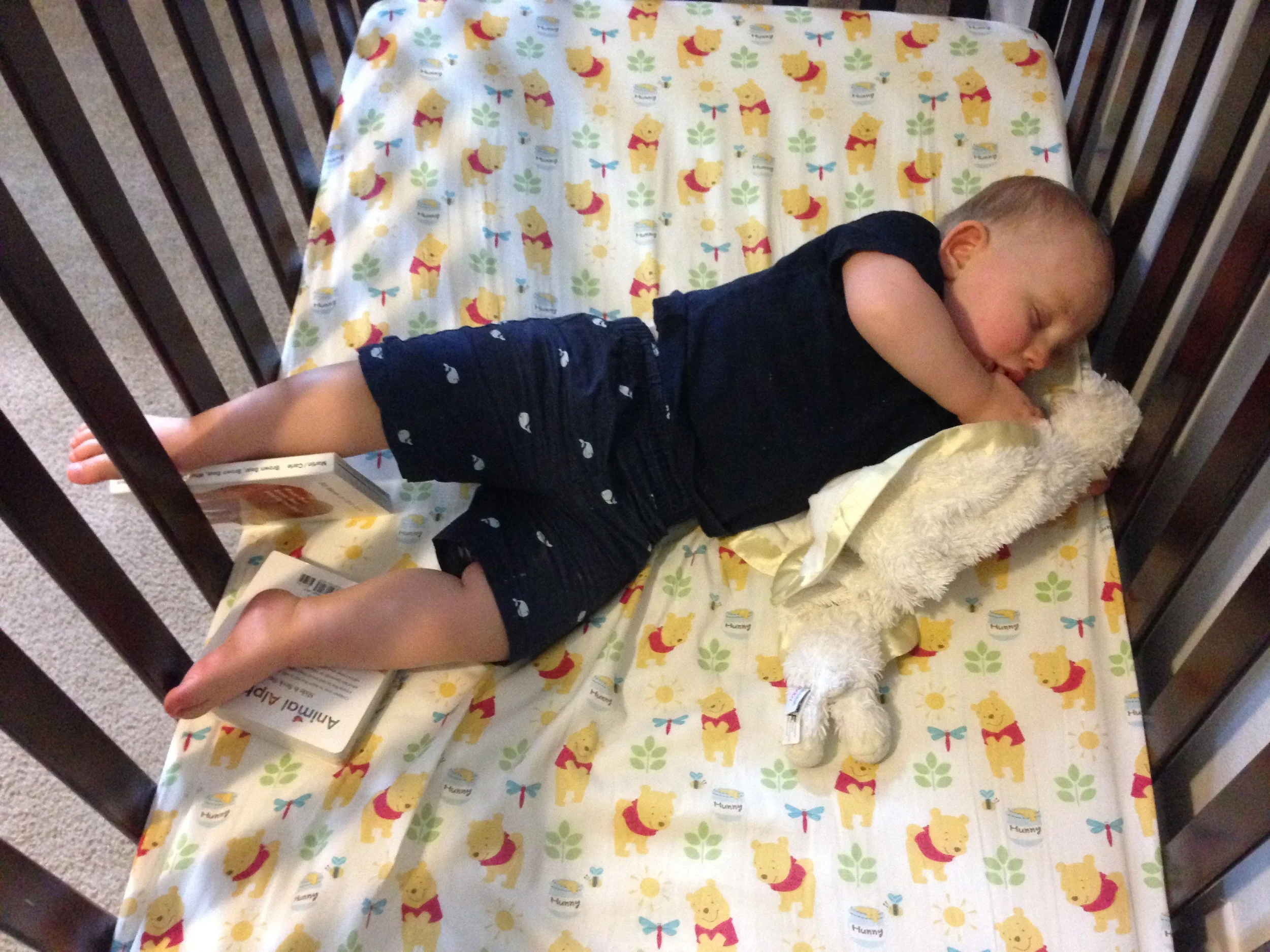 I set him in his crib with some books, came back a few minutes later, and he was out cold. Even after a month in daycare it still wipes him out from time to time.