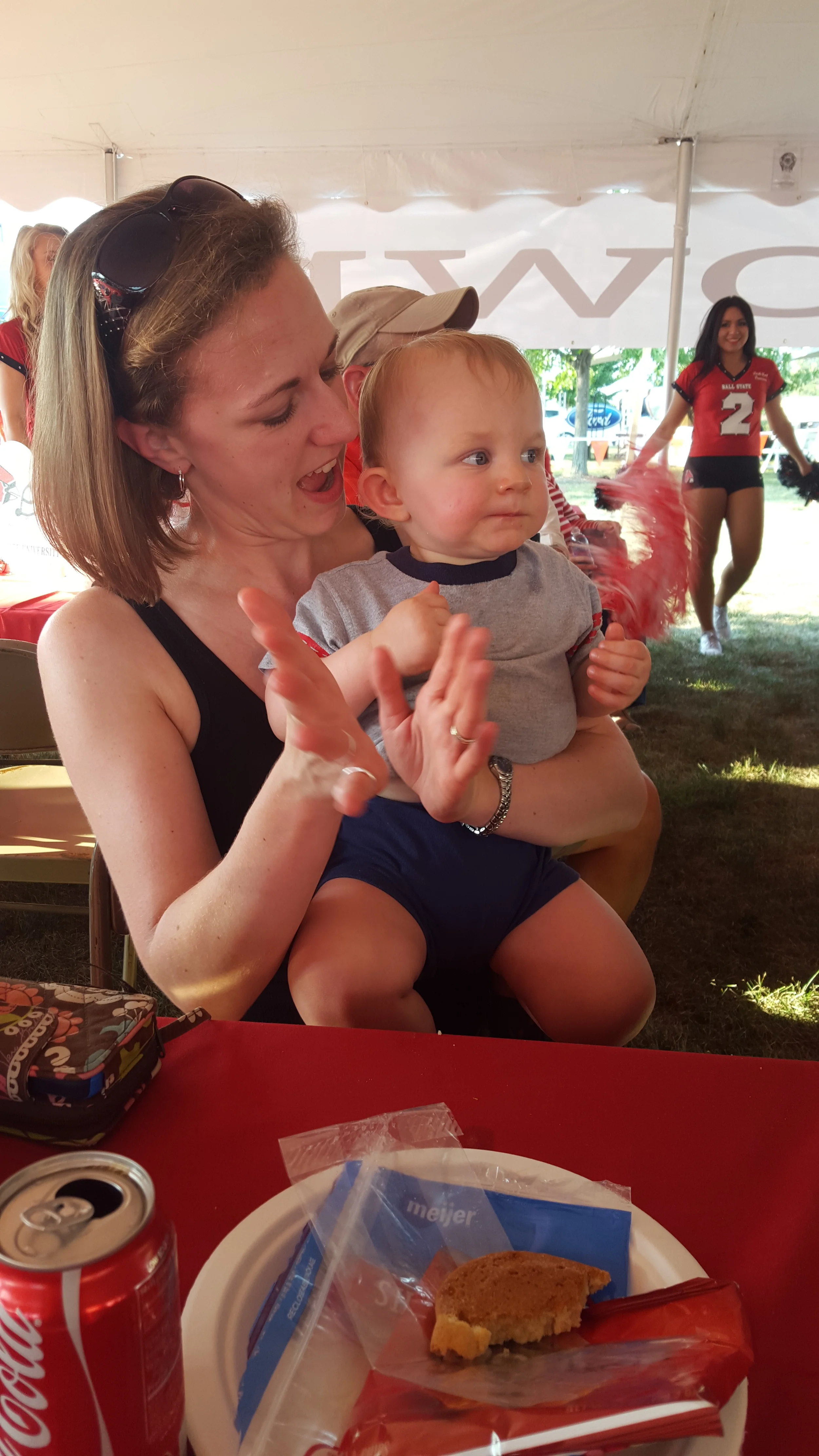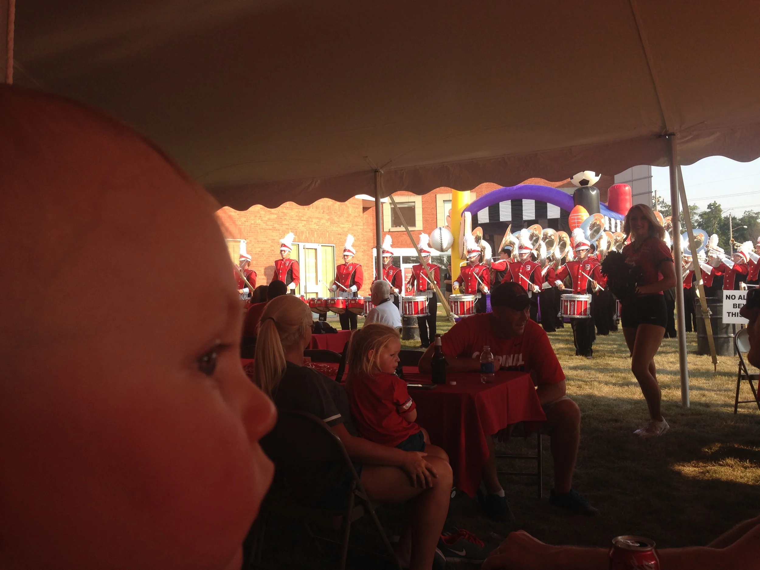 A live band! We walked down the street from our house and had lots of fun at this pep rally before the first Ball State football game. This was Gabriel's first time seeing a marching band up close & personal. It was a bit loud (mama didn't know they were going to be so close to us...) but Gabriel was in awe and loved clapping along. So much fun!