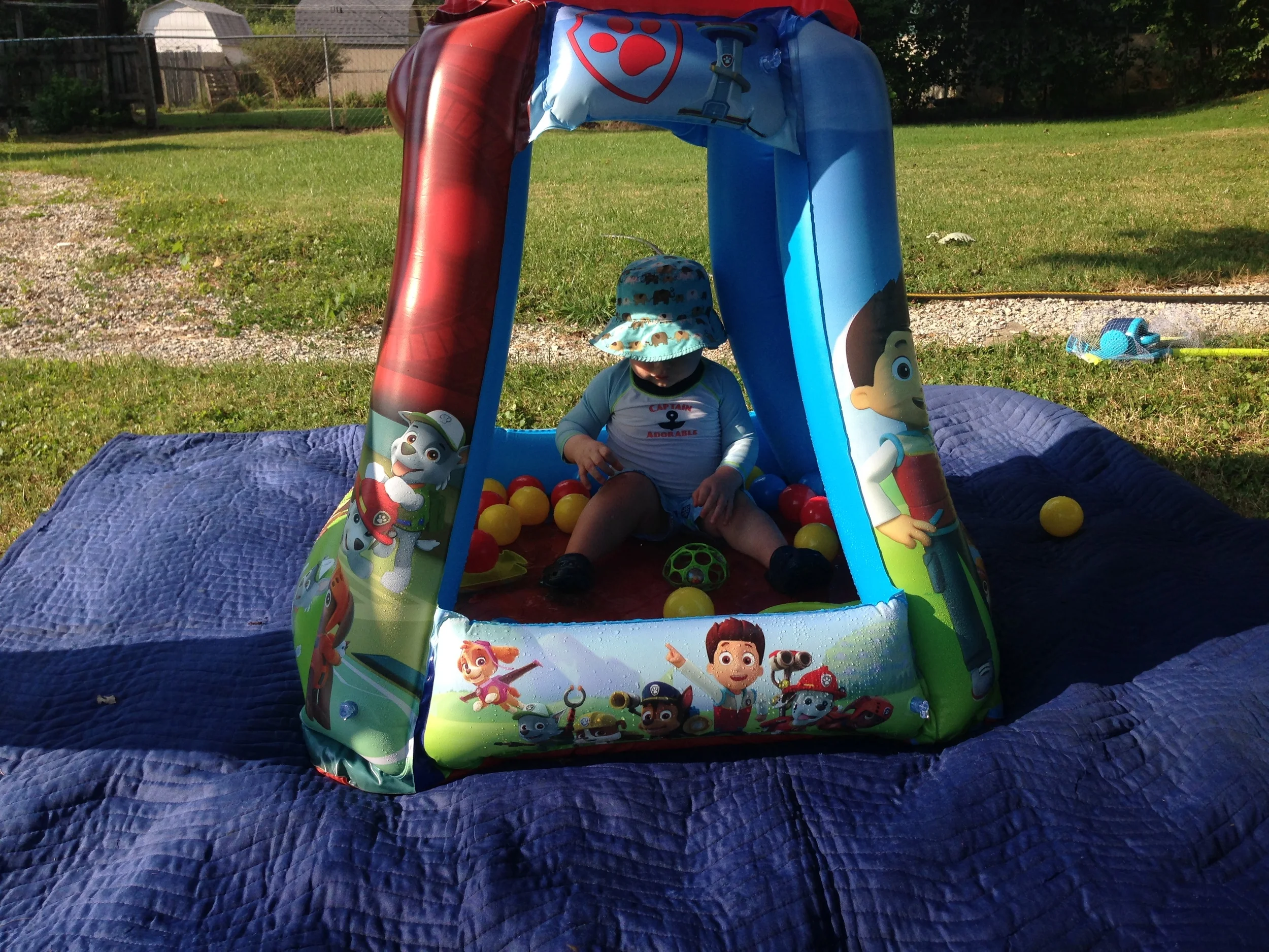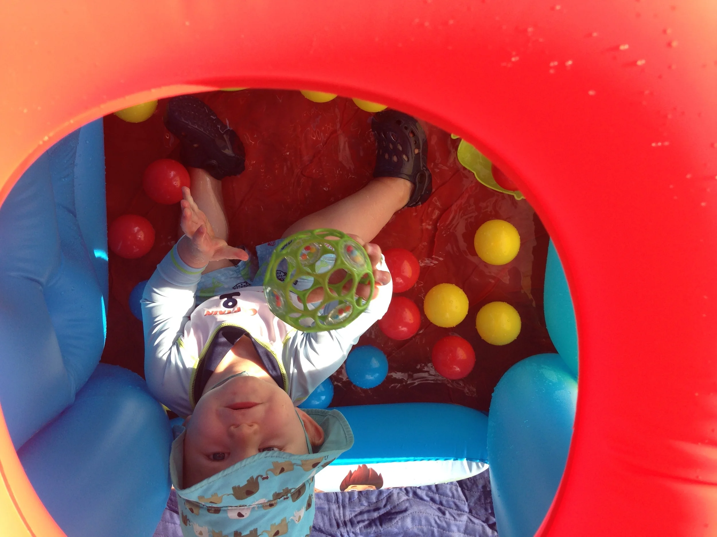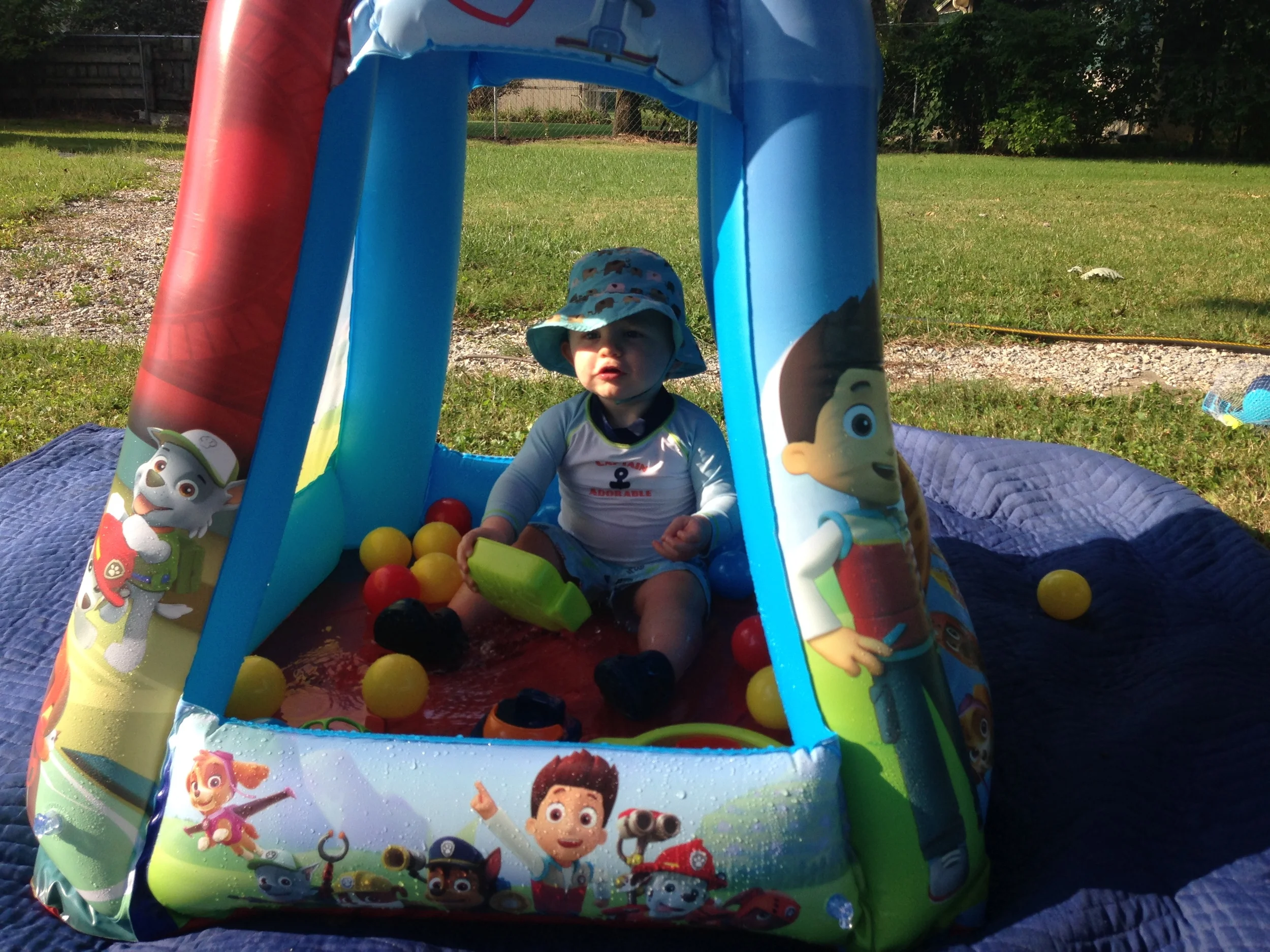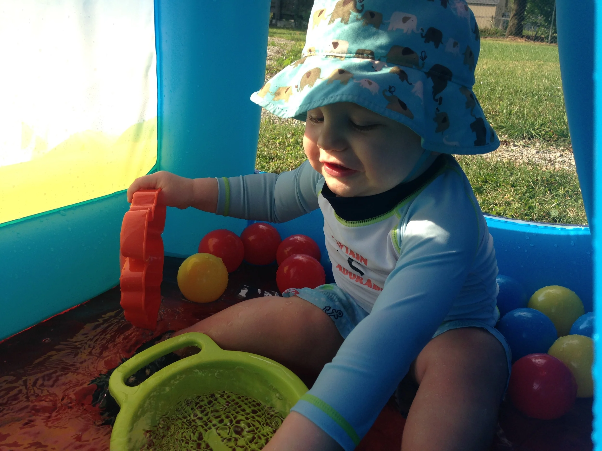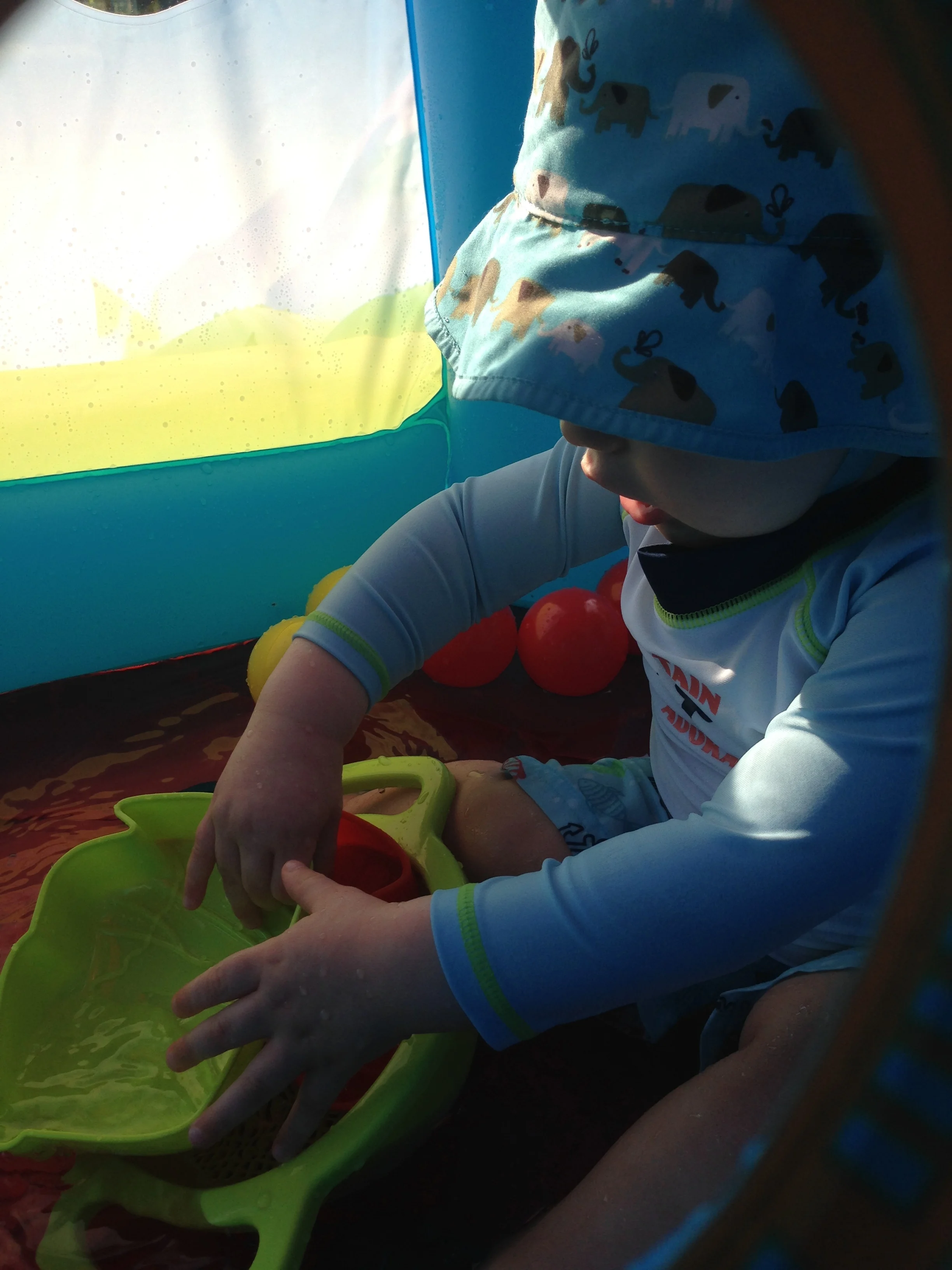 We took Gabriel's ball pit outside, filled it part way with water, put him in a bathing suit, and had a blast! :-)