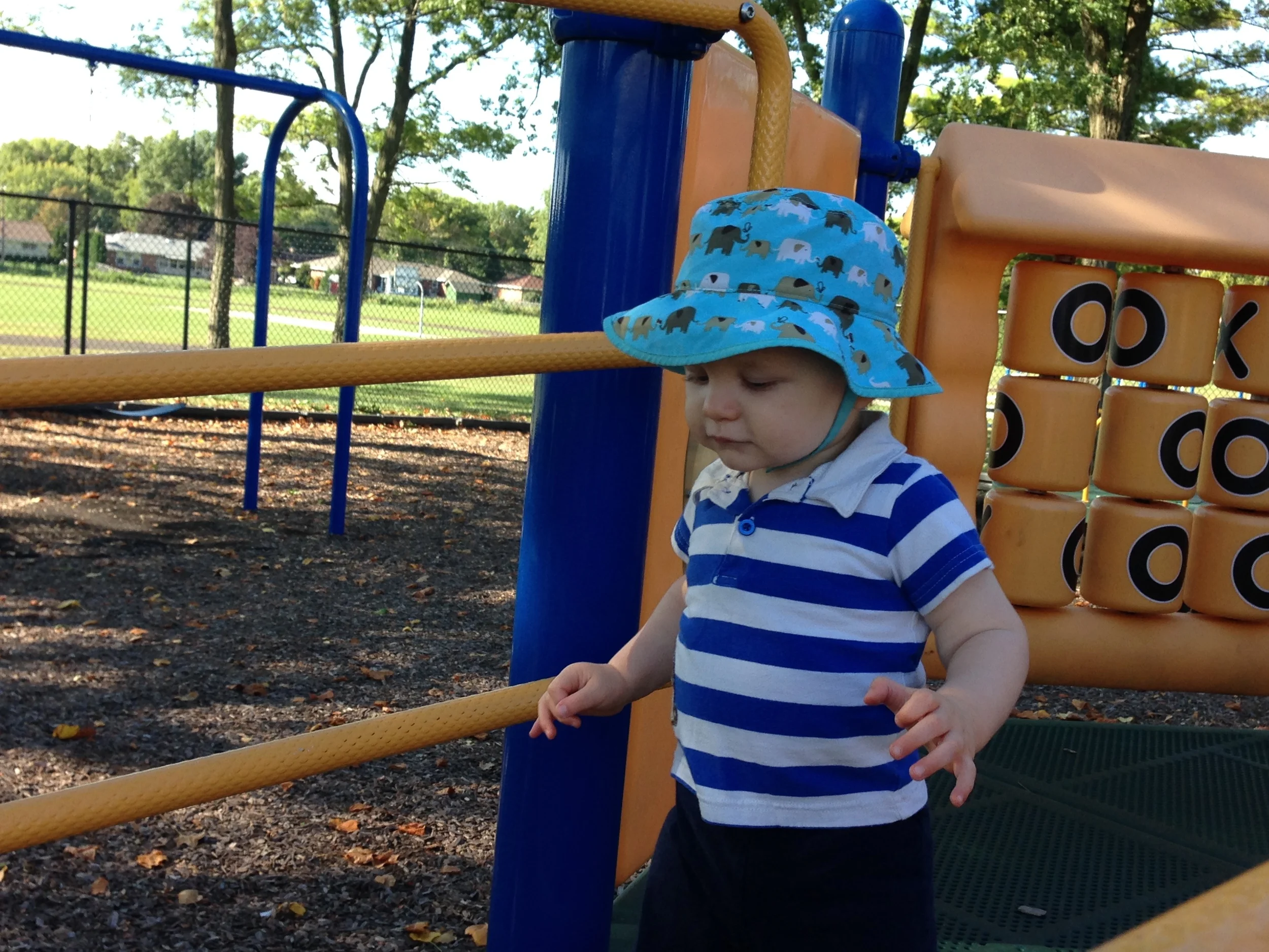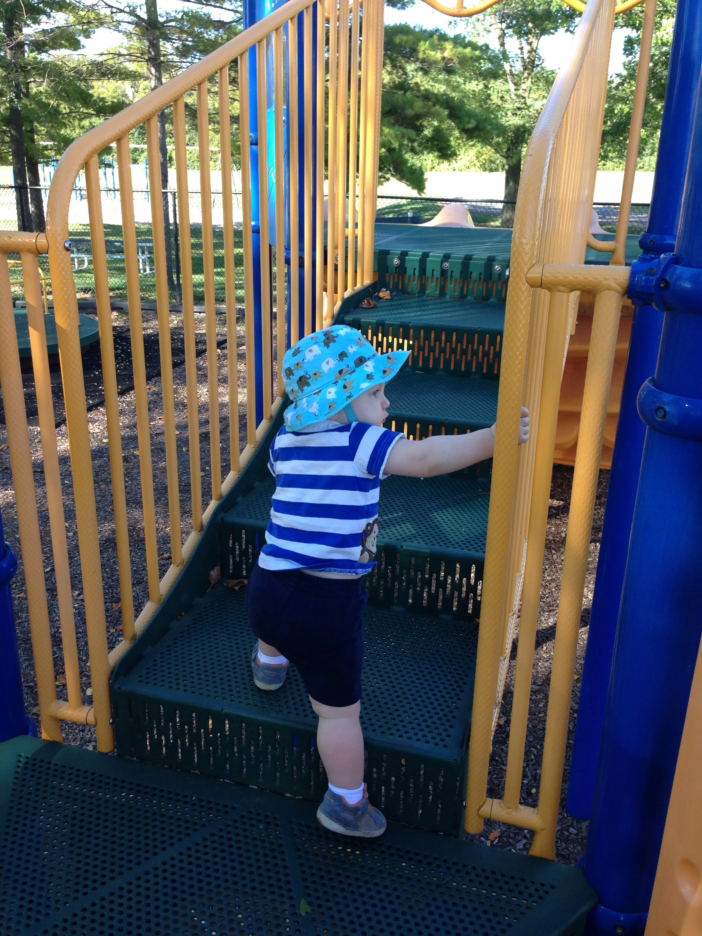 Our best adventure while daddy was gone was finally walking to the playground near our house. It was awesome! This playground is designed for kids with special needs so the gentle ramps and wide steps are perfect for a nearly 15-month old.
