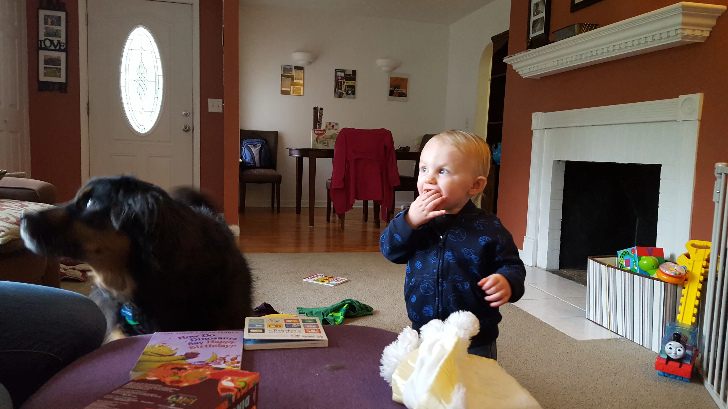 All I can say is that we have the best animals ever. Gabriel was pushing his luck, messing with Poco, and she was happy to just hang out and be patient until he ran out of interest.