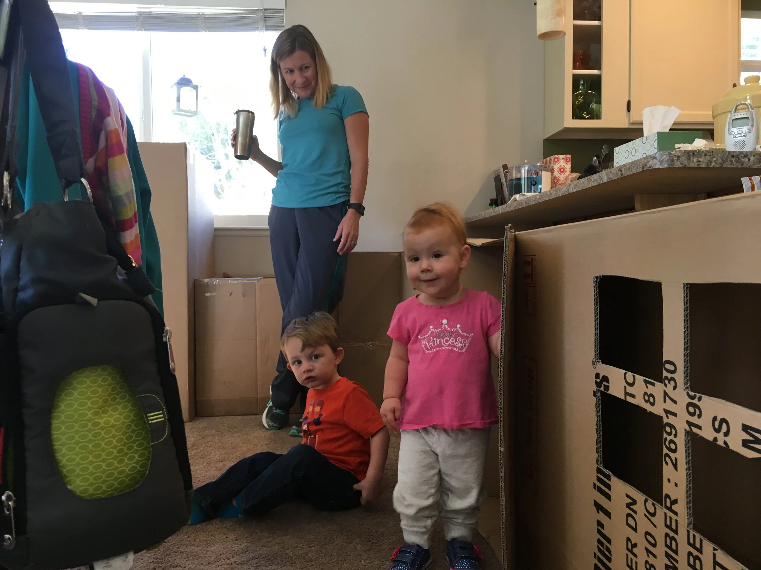 Jessie came to play! Box houses are more fun with friends.