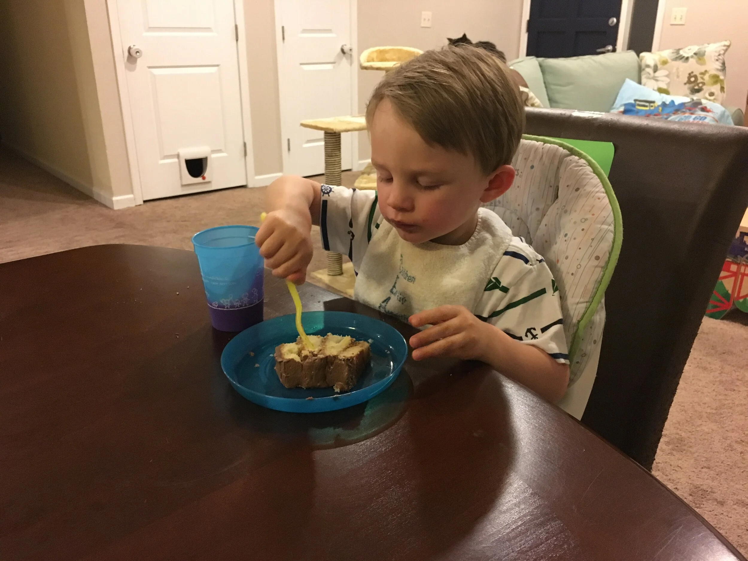 First snack at the new table! Thanks IKEA.