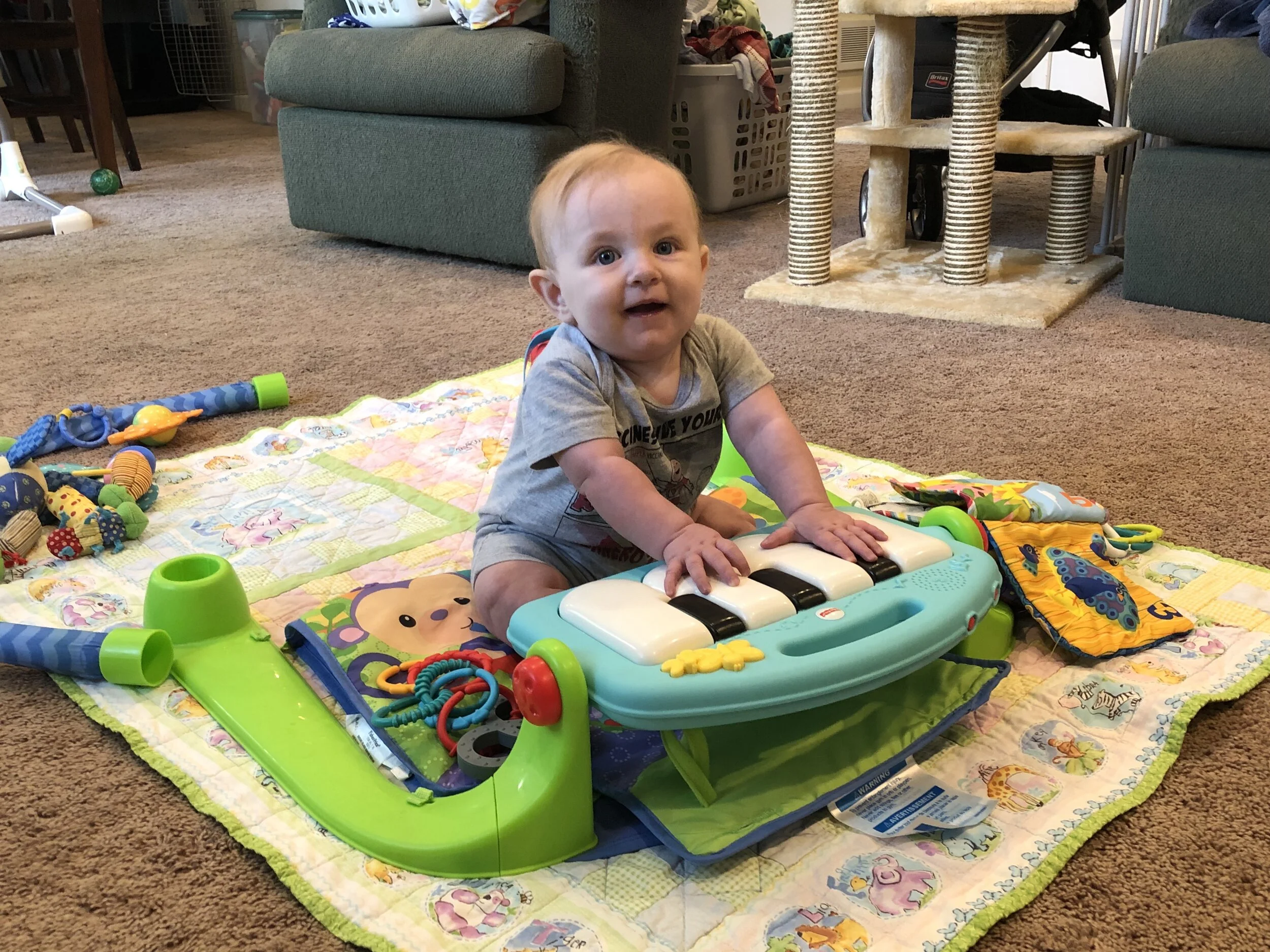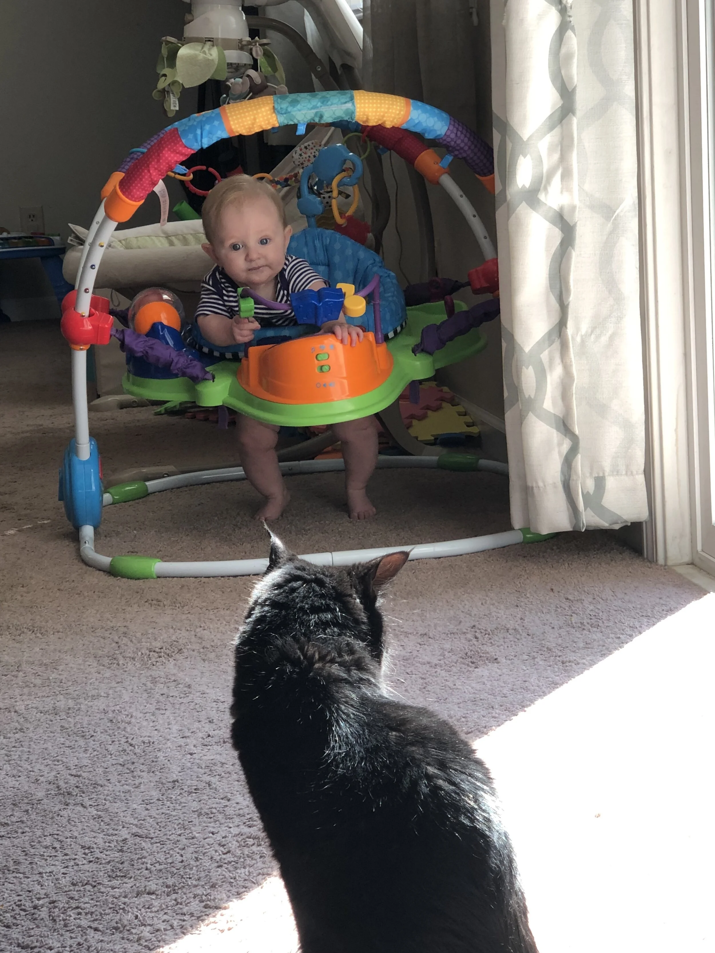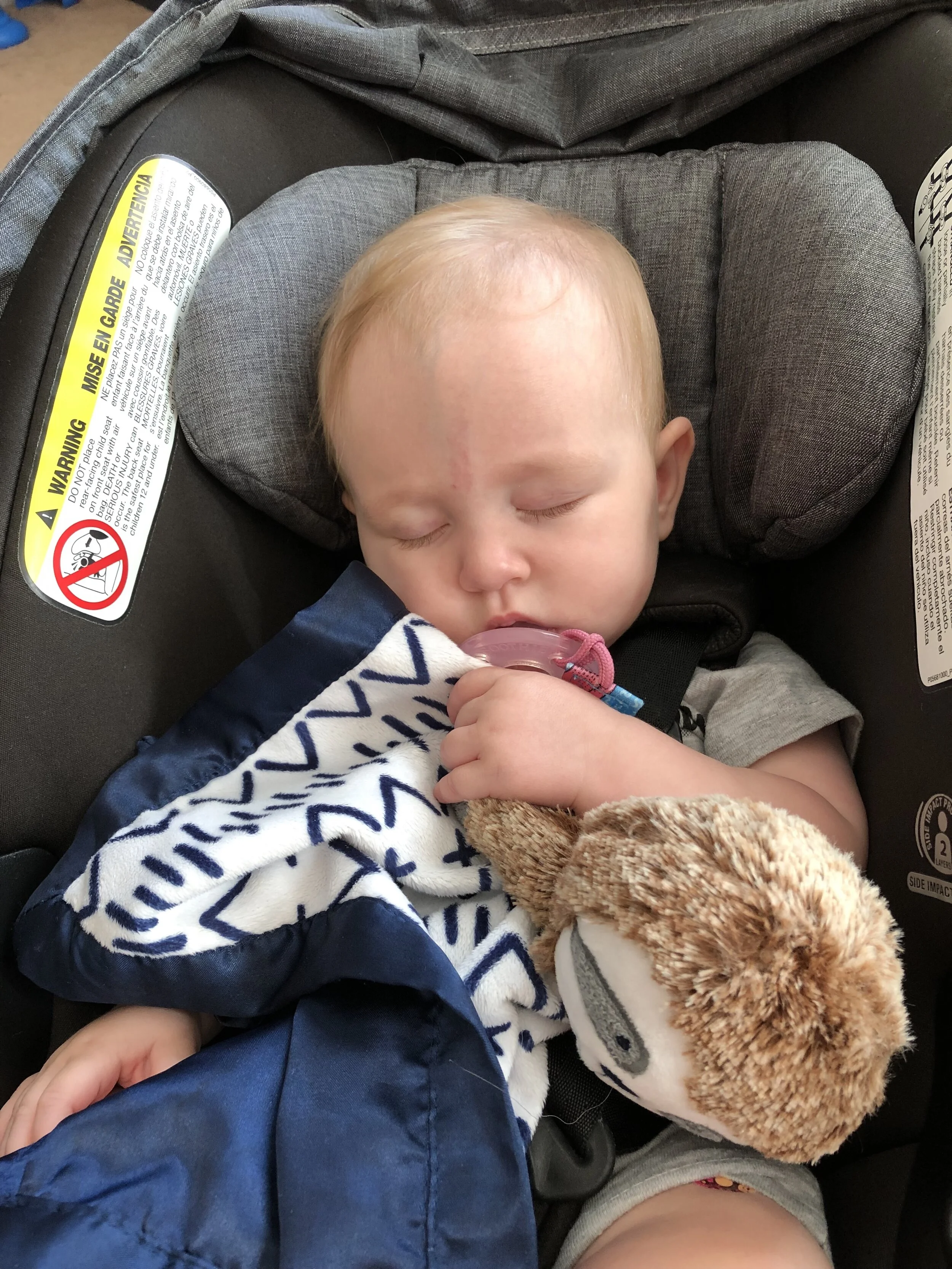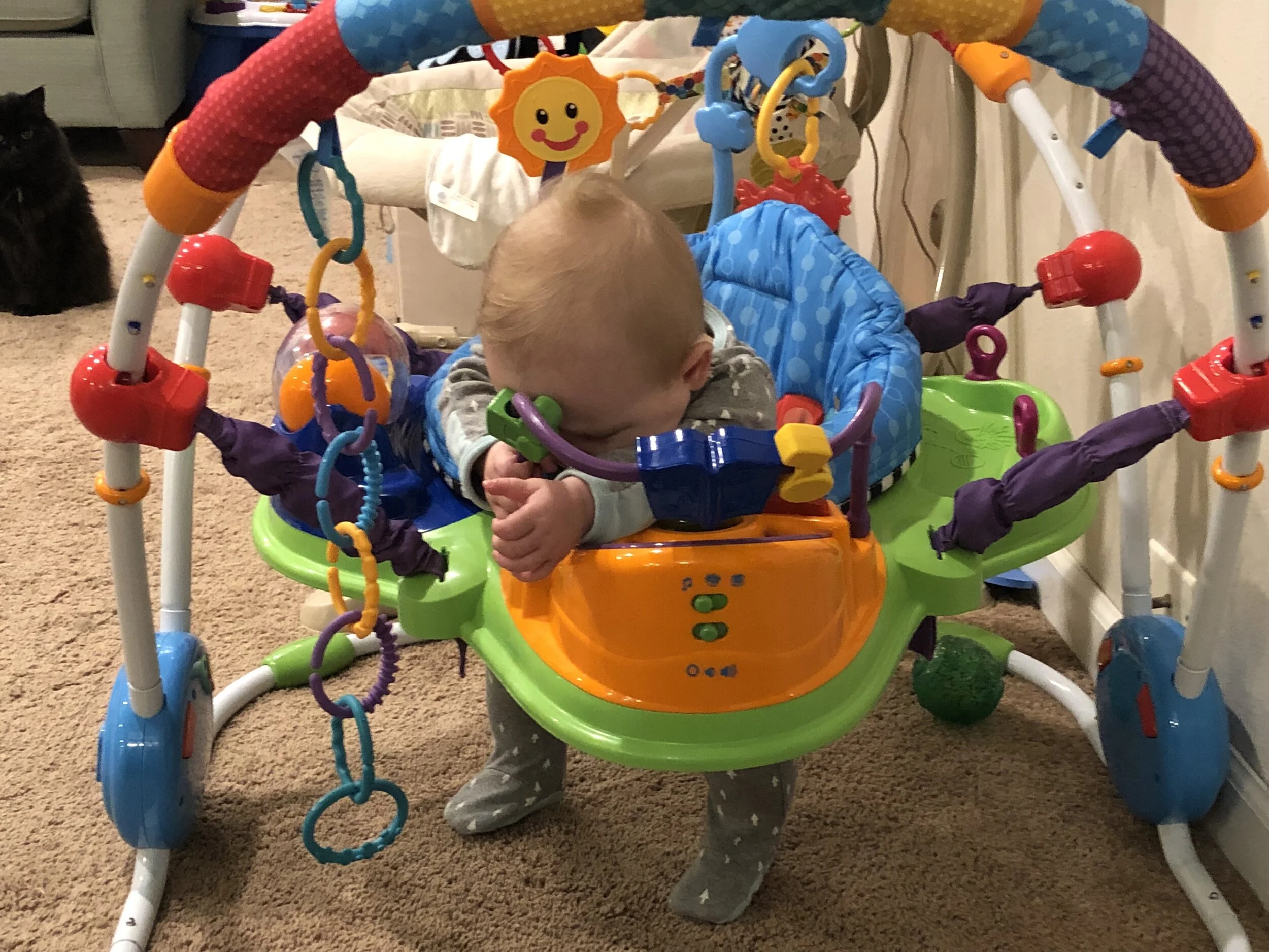 The same day as starting solid foods we decided to try out putting her in a cart instead of carrying the heavy carseat around. She was a fan! (As long as she could have one leg/foot propped up inside the cart, that is.) And yes, it was at Target because of course it was.