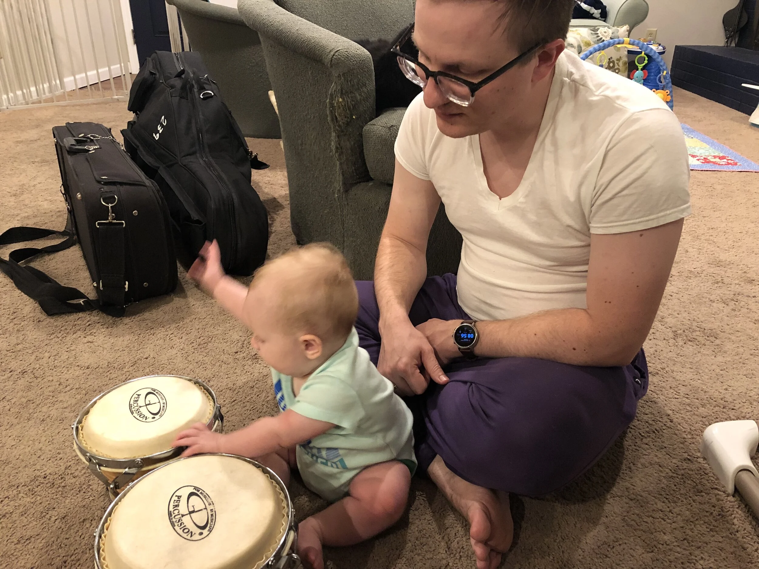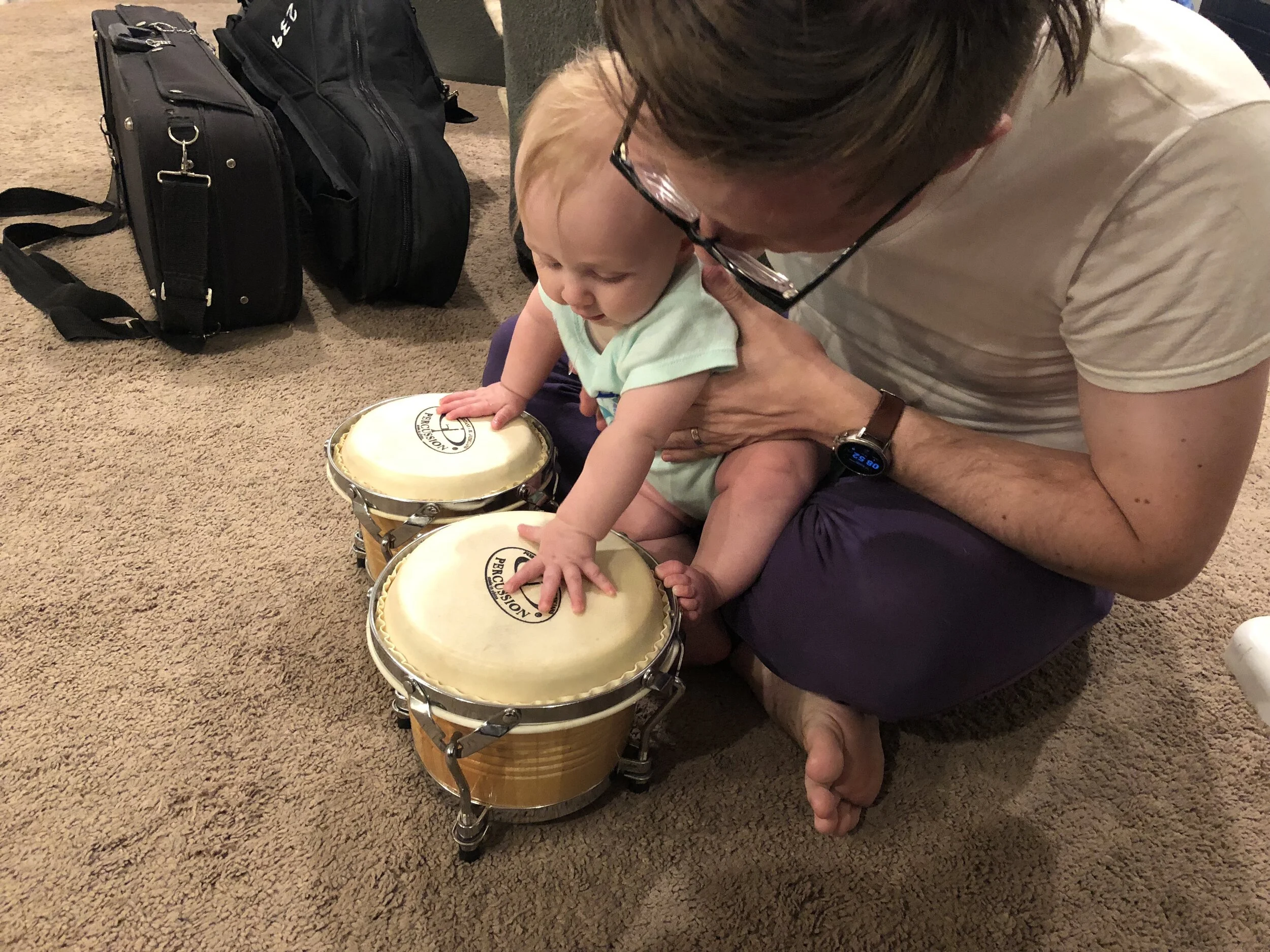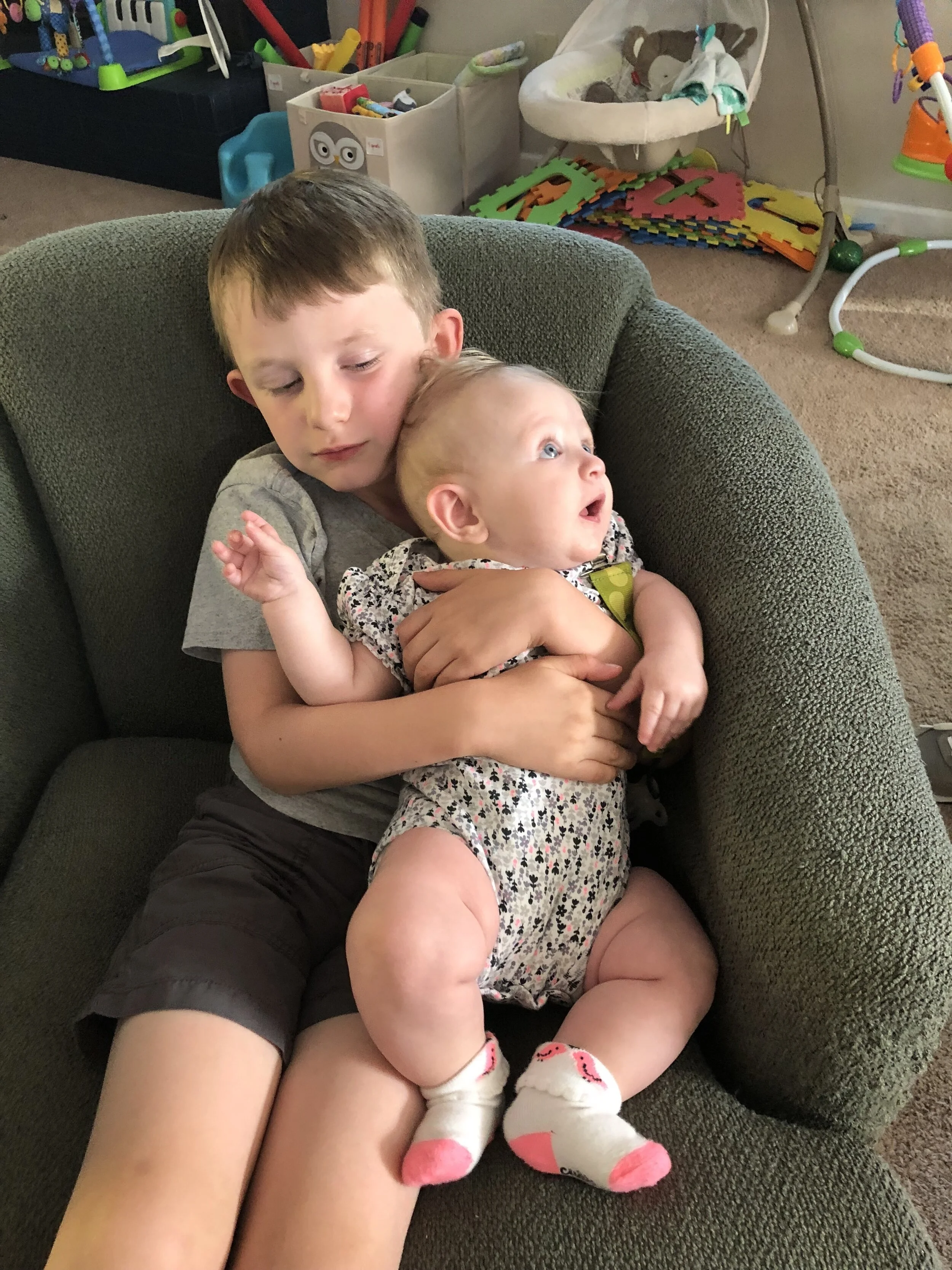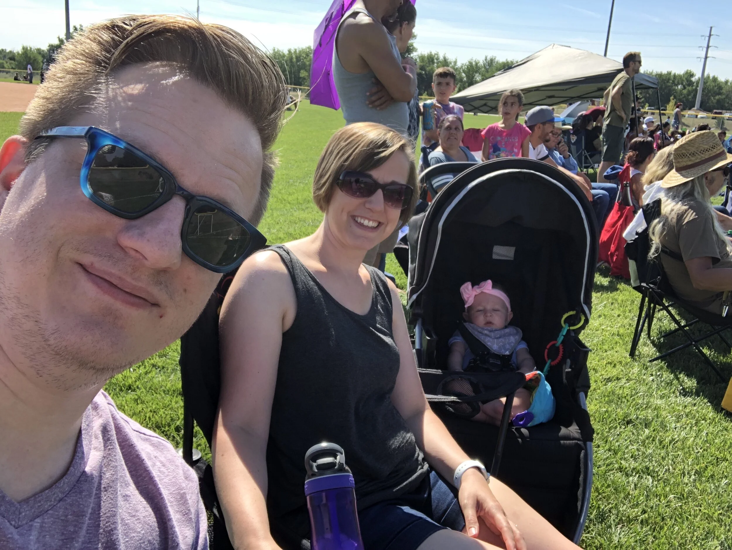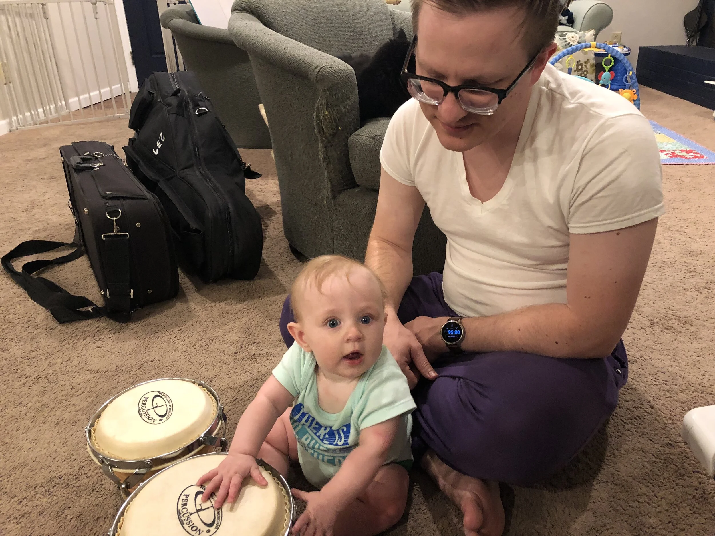 The same day as starting solid foods we decided to try out putting her in a cart instead of carrying the heavy carseat around. She was a fan! (As long as she could have one leg/foot propped up inside the cart, that is.) And yes, it was at Target because of course it was.