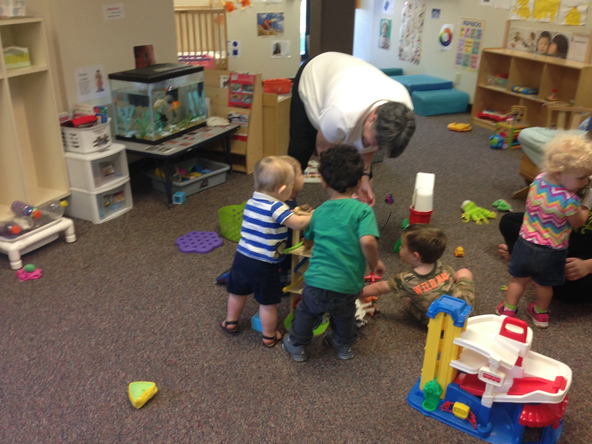 This was a morning that I saw another kid take a toy from Gabriel, a little fussing broke out, and Miss. Linda swooped in and handled it all beautifully. She had Gabriel distracted and happy in no time at all.
