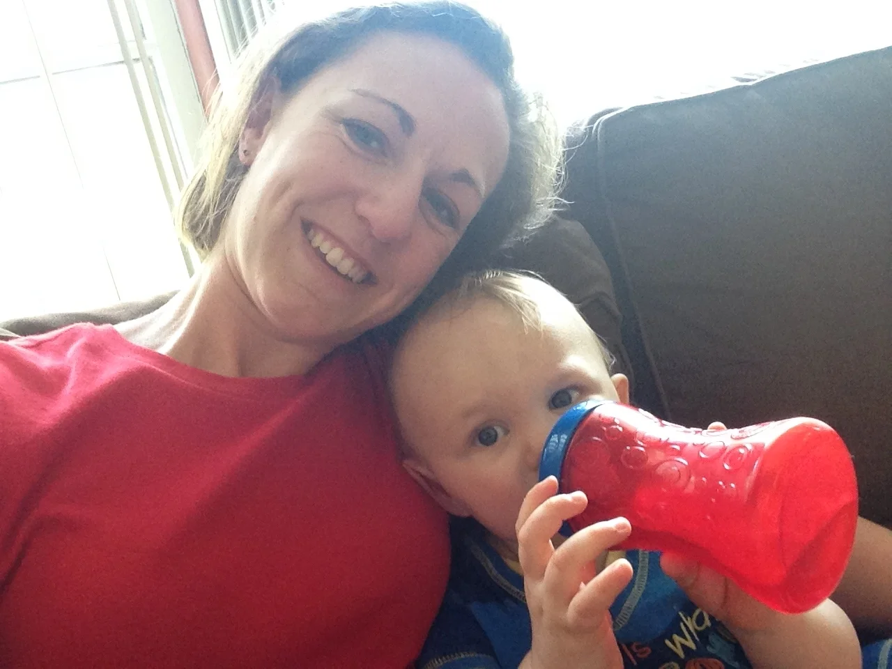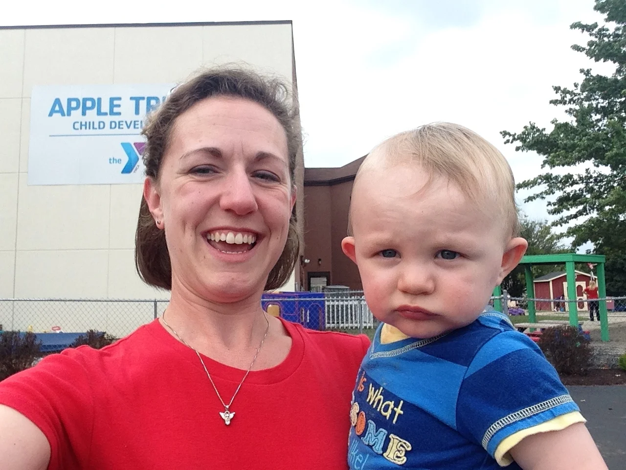 And this is mom picking Gabriel up at the end of the day. He may not look super excited but mom sure is. "We survived!" And he is one tired boy...